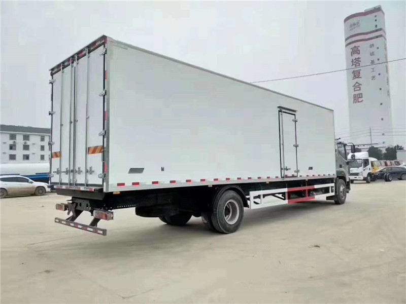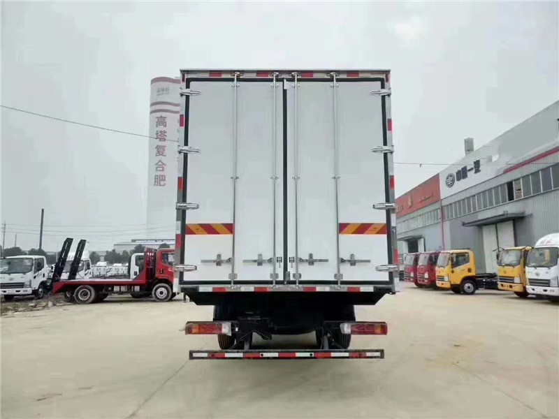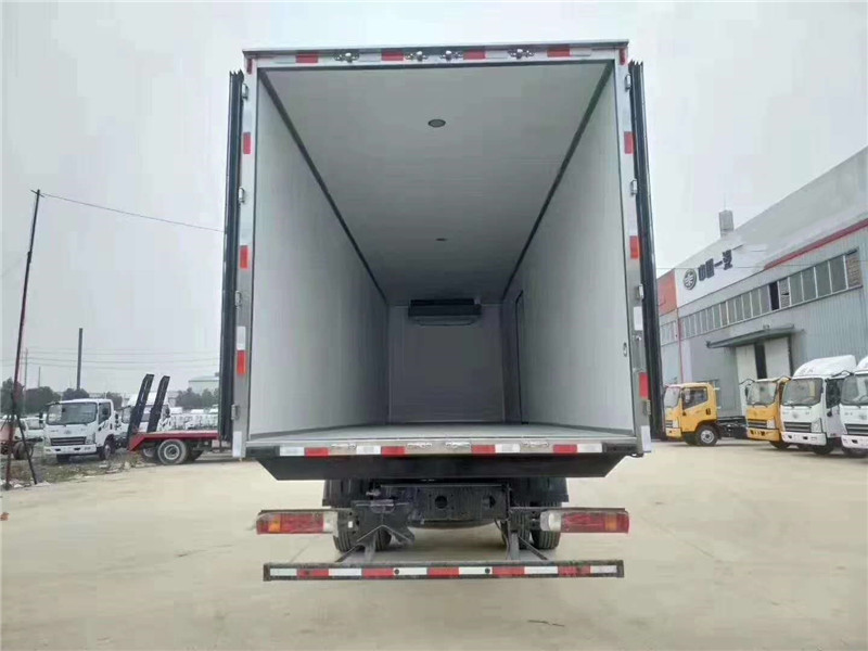 標準配置:箱體尺寸長×寬×高為:9580×2450×2500,約58.6立方,廂體厚度為8厘米。冷藏廂體內外板材采用冷藏車專用玻璃鋼,(可反射陽光),中間夾層為聚氨酯發泡隔熱材料,(防火阻燃隔熱),千噸壓機壓制而成,配置箱體全為不銹鋼鎖件,不銹鋼包角,不銹鋼門框,帶有頂燈及防撞塊。廂體底部為鋁花紋板。我廠的冷藏保溫車保溫材料選用進口級別XPS,吸水率≤1,導熱系數≤0.028W/mk,抗壓≥150Kpa,密度30~45kg/m3,使用國際上最為先進的第五代全封閉聚氨酯板塊粘接結構,廂板表面材料有玻璃鋼、不銹鋼、鋁合金、彩鋼板等材料可供選擇,廂體成型后具有質量輕,保溫系數高,抗沖擊力強,無滲漏等優點,對大氣、水和酸、堿、鹽等介質具有良好的耐腐蝕性和抗老化性 。通過優化設計,降低了整車質心,增大了有效容積。經測試,整車綜合節能率,使用壽命,比一般冷藏保溫廂高1~2倍。廂體內部選裝肉鉤導軌,地板通風槽,溫濕度記錄儀等設備。