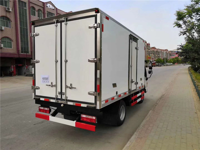 江淮康鈴國五藍牌3米7冷藏車標準配置:箱體尺寸長×寬×高為:3800×1800×1810,12.3立方,廂體厚度為8厘米。內外板材采用冷藏車專用玻璃鋼,(可反射陽光),中間夾層為聚氨酯發泡隔熱材料,(防火阻燃隔熱),配置箱體全為不銹鋼鎖件,不銹鋼包角,不銹鋼門框,帶有頂燈及防撞塊。,廂板表面材料有玻璃鋼、不銹鋼、鋁合金、彩鋼板等材料可供選擇,廂體成型后具有質量輕,保溫系數高,抗沖擊力強,無滲漏等優點,對大氣、水和酸、堿、鹽等介質具有良好的耐腐蝕性和抗老化性 。通過優化設計,降低了整車質心,增大了有效容積。經測試,整車綜合節能率,使用壽命,比一般冷藏保溫廂高1~2倍。廂體加裝肉鉤M型肉鉤導軌,副駕駛邊開側門。選裝地板通風槽,選裝溫濕度記錄儀,選裝內材質不銹鋼材質。