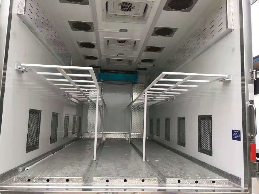 車廂左右側板根據廂體長度開多個帶網孔板通風窗戶,車頂和尾門配電子排氣扇,避免二氧化碳氣體聚集。