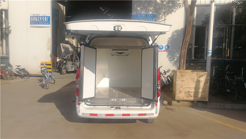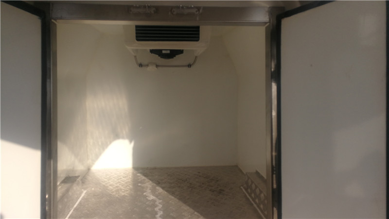金杯小型雙排國六面包冷藏車標準配置:箱體尺寸長×寬×高為:1180×1260×1160,91.6立方,廂體厚度為5厘米。內膽圓弧式廂體,內板材采用冷藏車專用玻璃鋼,(可反射陽光),中間夾層為聚氨酯保溫板,內板材為不銹鋼板,地板為不銹鋼花紋板,配置箱體全為不銹鋼鎖件,不銹鋼包角,不銹鋼門框,帶有頂燈及防撞塊,廂板表面材料有玻璃鋼、不銹鋼、鋁合金、彩鋼板等材料可供選擇,廂體成型后具有質量輕,保溫系數高,抗沖擊力強,無滲漏等優點,對大氣、水和酸、堿、鹽等介質具有良好的耐腐蝕性和抗老化性 。通過優化設計,降低了整車質心,增大了有效容積。經測試,整車綜合節能率,使用壽命,比一般冷藏保溫廂高1~2倍。廂體內部可選裝5面鋁合金通風槽或不銹鋼通風槽,選裝溫濕度記錄儀等設備,制冷設備可選裝國產或進口冷機。