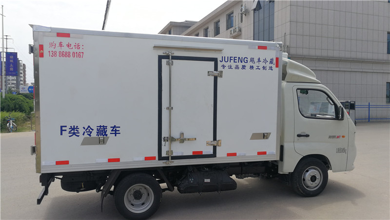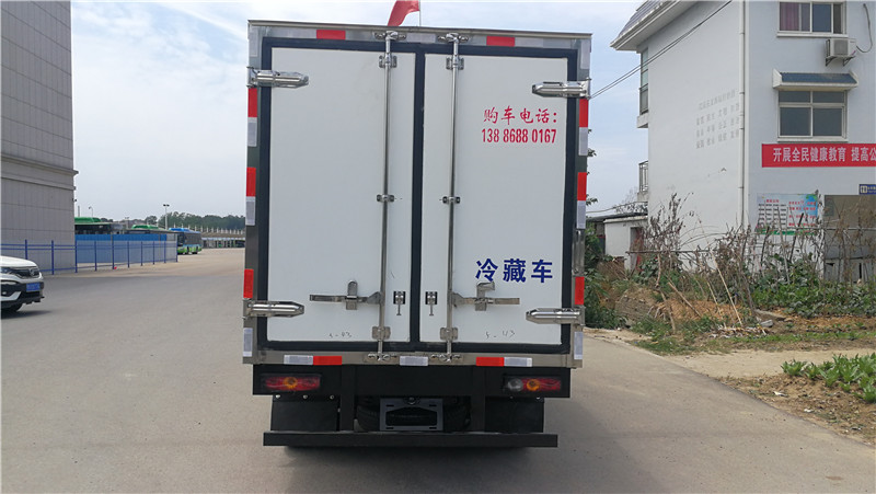 我公司生產的福田祥菱M1后雙輪國六冷藏車是用原裝福田祥菱定型二類底盤改裝而成,具有馬力大,自重輕,采用國內外知名冷藏機組,降溫快,冷藏效果好。外觀美觀大氣。廣泛用于食品,水果,蔬菜,醫療,