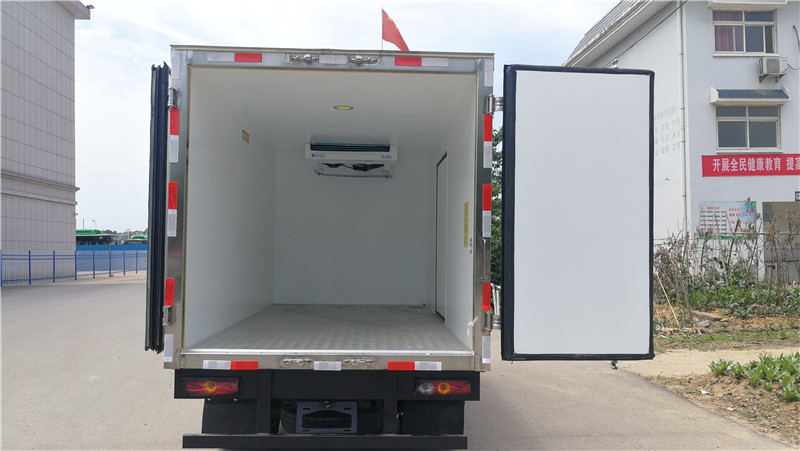 不銹鋼門框,帶有頂燈及防撞塊。廂板表面材料有玻璃鋼、不銹鋼、鋁合金、彩鋼板等材料可供選擇,廂體成型后具有質量輕,保溫系數高,抗沖擊力強,無滲漏等優點,對大氣、水和酸、堿、鹽等介質具有良好的耐腐蝕性和抗老化性 。通過優化設計,降低了