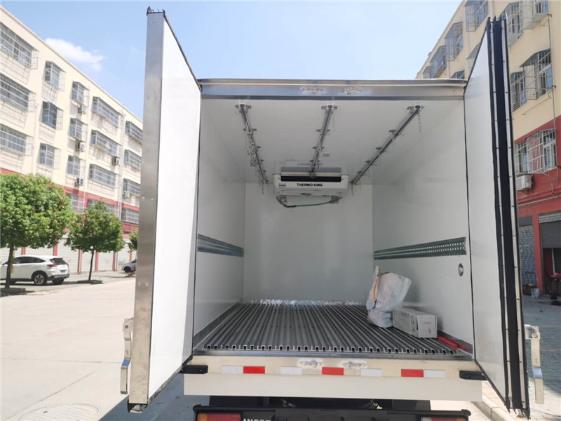 依維柯得意3米5冷藏車標準配置:箱體尺寸長×寬×高為:3500×1980×1850,12.8立方,廂體厚度為8厘米。內外板材采用冷藏車專用玻璃鋼,(可反射陽光),中間夾層為8公分保溫材料,配置箱體全為不銹鋼鎖件,不銹鋼包角,不銹鋼門框,帶有頂燈及防撞塊。廂板表面材料有玻璃鋼、不銹鋼、鋁合金、彩鋼板等材料可供選擇,廂體成型后具有質量輕,保溫系數高,抗沖擊力強,無滲漏等優點,對大氣、水和酸、堿、鹽等介質具有良好的耐腐蝕性和抗老化性 。通過優化設計,降低了整車質心,增大了有效容積。經測試,整車綜合節能率,使用壽命,比一般冷藏保溫廂高1~2倍。廂體內部可選裝地板通風槽,肉鉤導軌,藍貨槽,溫濕度記錄儀等冷鏈物流專用設備,制冷機組可根據運輸的貨物選裝國產或進口機組,選裝保鮮-5度,冷凍-15度制冷機組。