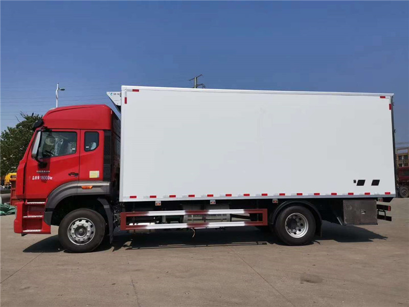 重汽豪瀚高頂雙臥德國曼240馬力6米8冷藏車標準配置:冷藏箱體斷橋隔熱工藝、整體結構框架;內外玻璃鋼板夾聚氨酯保溫層真空復合而成,底板為鋁花紋板,龍骨斷橋為松木復合板;木質隔溫結構;廂體厚度為8cm;不銹鋼包角;最新款鋁合金包邊型材;廂體內部采用2個LED照明燈;后門框為2mm厚不銹鋼材質;門框密封條為橡膠材質;加厚型不銹鋼鉸鏈及鎖件;副駕駛邊開雙開門,廂體四周加裝鋁花紋板。,配件箱體全為不銹鋼鎖件,不銹鋼包角,不銹鋼門框,帶有頂燈及防撞塊。廂體內部裝有照明燈和誤操作報警器,加裝鋁合金材質導風槽,導風槽可是廂體底部均勻的吹到冷風,廂板表面材料有玻璃鋼、不銹鋼、鋁合金、彩鋼板等材料可供選擇,廂體成型后具有質量輕,保溫系數高,抗沖擊力強,無滲漏等優點,對大氣、水和酸、堿、鹽等介質具有良好的耐腐蝕性和抗老化性 。通過優化設計,降低了整車質心,增大了有效容積。
