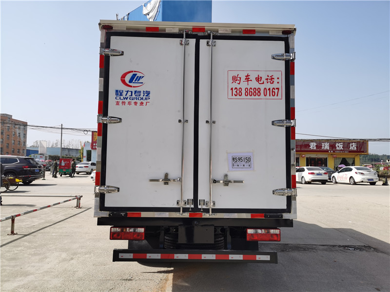 江淮駿鈴藍牌4米2冷藏車標準配置:箱體內(nèi)尺寸長×寬×高為:4030×2000×2000(mm),16立方,廂體厚度為8厘米。內(nèi)外板材采用冷藏車專用玻璃鋼,(可反射陽光),中間夾層為8公分保溫板,(防火阻燃隔熱),箱體全為不銹鋼鎖件,不銹鋼包角,不銹鋼門框,鋁合金包邊帶有頂燈及防撞塊。廂板表面材料有玻璃鋼、不銹鋼、鋁合金、彩鋼板等材料可供選擇,廂體成型后具有質(zhì)量輕,保溫系數(shù)高,抗沖擊力強,無滲漏等優(yōu)點,對大氣、水和酸、堿、鹽等介質(zhì)具有良好的耐腐蝕性和抗老化性 。通過優(yōu)化設計,降低了整車質(zhì)心,增大了有效容積。經(jīng)測試,整車綜合節(jié)能率,使用壽命,比一般冷藏保溫廂高1~2倍。箱體內(nèi)部選裝地板通風槽,溫濕度記錄儀,肉鉤導軌等專用設備。制冷設備選裝進口或國產(chǎn)冷機,選裝保鮮-5度,冷凍-15度制冷機組 。