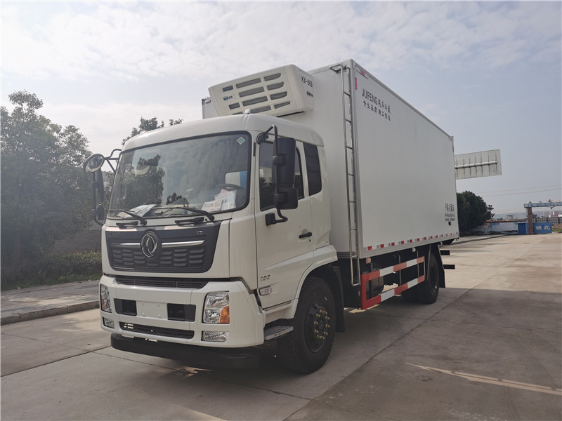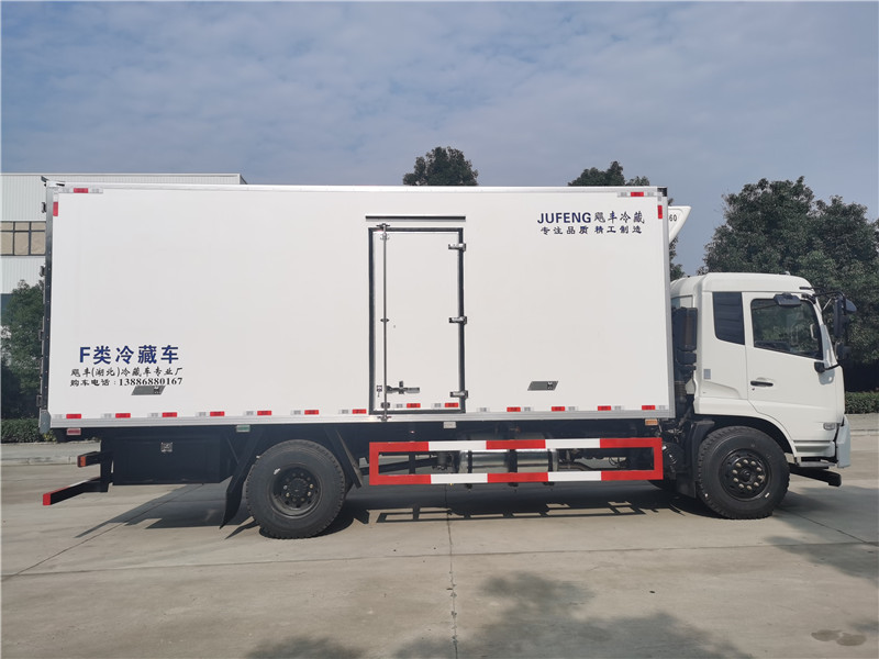 東風天錦6米8肉鉤冷藏車是一款黃牌冷鏈物流專用車輛,主要用于肉制品(豬白條,牛羊肉)運輸,車,總質量18噸,整備質量7.9噸(肉鉤車不超重),額定質量9.9噸。 車身配置為:東風天錦排半駕駛室,東風康明斯180馬力發動機(可選210馬力發動機),法士特8單變速箱,斷氣剎,4.5噸前橋,9噸后橋,10.00R20鋼絲胎,可調節大燈,剎車自動調整臂。