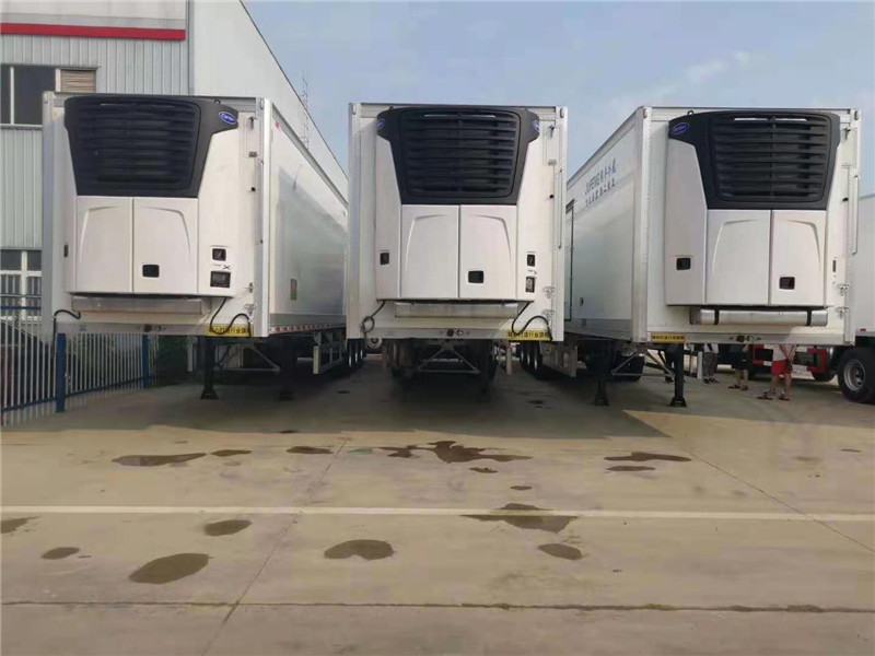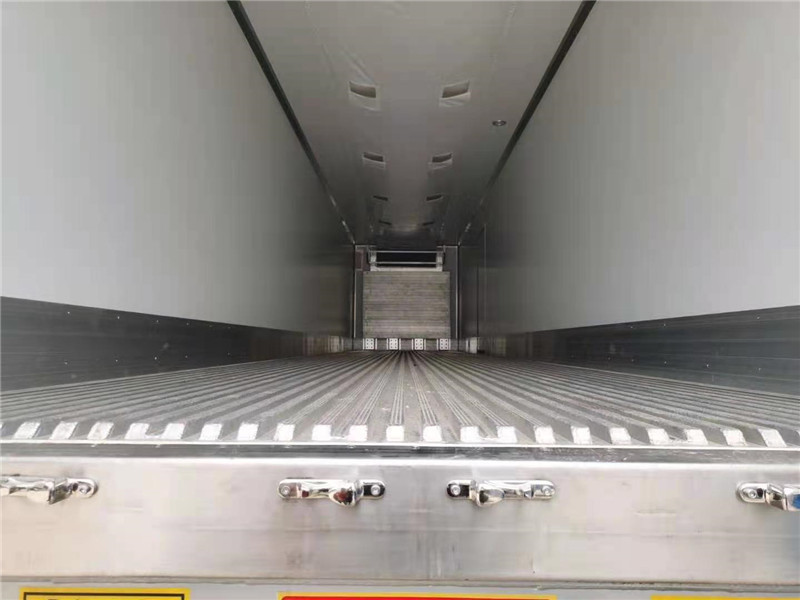 13米6鋁合金輕量化配置:半掛冷藏車車架選用J0ST 28T單動支腿,三軸并裝13噸原廠全新富華橋,16噸剎車片,11.00R20鋼絲輪胎,90#牽引銷。 冷藏車保溫箱體材質(zhì)為內(nèi)外玻璃鋼板制作,中間10CM聚氨酯保溫板,高強(qiáng)度樹脂膠粘接,玻璃纖維布增強(qiáng),采用國內(nèi)最先進(jìn)的16米恒溫恒壓液壓保溫板成型壓板機(jī)一次性壓制成型,鋁合金型材包邊,不銹鋼門框、門鎖件,地板平鋪鋁合金通風(fēng)槽,選裝側(cè)開門。制冷機(jī)組選裝鄭州凱雪、勁達(dá)K牌、美國開利、美國冷王等半掛冷藏車專用獨(dú)立制冷機(jī)組,最低溫度可以達(dá)到-30度。