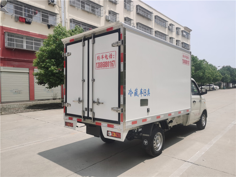箱體拼接出來不打膠無縫隙,降溫速度快、散溫慢、保溫效果好,門帶斜邊,副梁是510大梁鋼一次性折成,用壓板鎖緊,側護網和后保險杠一次性成型。箱體內部可選裝地板通風槽,肉鉤導軌,溫濕度記錄儀,攔貨槽等冷藏專用配置,制冷設備可根據實際使用需求安裝國產或進口冷機,選裝保險-5度,冷凍-15度制冷機組。