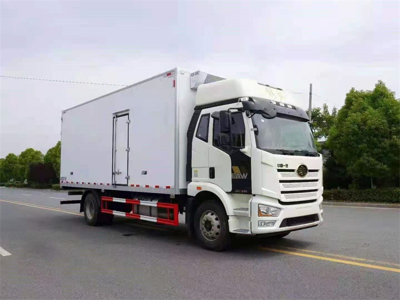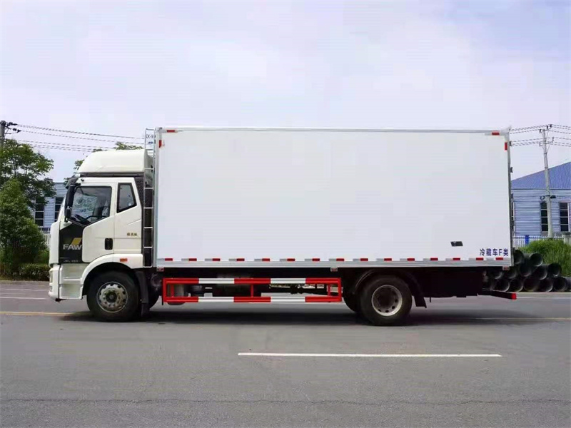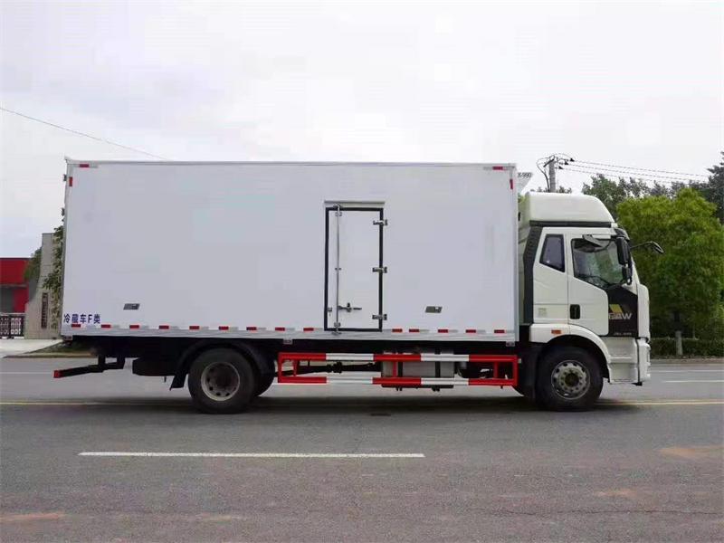 解放J6L精英版國六6米8冷藏車上裝配置:冷藏箱體內尺寸6800*2420*2500(mm),箱體采用斷橋隔熱技術,箱板是由鍍鋅管骨架加上環保防水木板一次成型,中間8CM新型環保輕量化保溫材料,加厚3.0玻璃鋼,高強度粘合劑、熱壓成型,外框采用304不銹鋼、加厚鋁型材包邊、27不銹鋼大門鎖、配件,箱體拼接出來不打膠無縫隙,降溫速度快、散溫慢、保溫效果好,門帶斜邊,副梁是510大梁鋼一次性折成,用壓板鎖緊,側護網和后保險杠一次性成型。