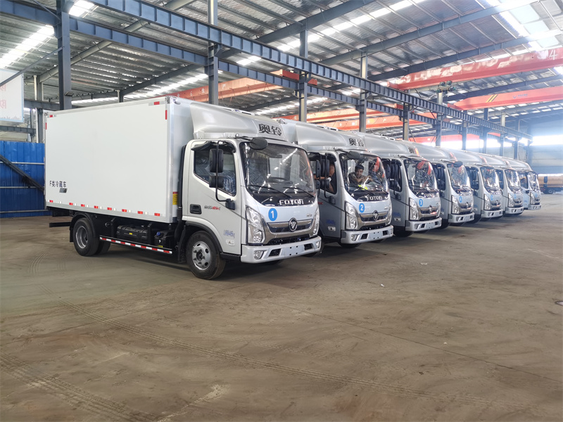 奧鈴 速運國六藍牌4米2冷藏車車輛配置:奧鈴速運單排可前翻駕駛室,駕駛室可坐3人,銀色金屬漆駕駛室,福田康明斯國六131馬力發動機,5檔變速箱,5噸后橋,動力轉向,空調,多功能方向盤,定速巡航,方向助力,氣剎(帶斷氣剎),EP節油開關,ABS,中控鎖+電動玻璃+遙控鑰匙,剎車自調臂,可調大燈,7.00R16鋼絲胎,軸距3360mm.