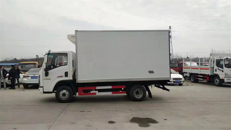 陜汽輕卡德翼9國六4米2藍牌冷藏車上裝配置:冷藏箱體內尺寸4060x2100X2100(mm),保溫箱體采用斷橋隔熱技術,箱板是由鍍鋅管骨架加上環保防水木板一次成型,中間8CM新型環保輕量化保溫材料,加厚3.0玻璃鋼,高強度粘合劑、熱壓成型,外框采用304不銹鋼、加厚鋁型材包邊、27不銹鋼大門鎖、配件,箱體拼接出來不打膠無縫隙,降溫速度快、散溫慢、保溫效果好,門帶斜邊,副梁是510大梁鋼一次性折成,用壓板鎖緊,側護網和后保險杠一次性成型。箱體內部選裝地板通風槽,溫濕度記錄儀,肉鉤導軌等專用設備。制冷設備選裝國產或進口冷機,選裝保鮮-5度,冷凍-15度制冷機組。最低溫度可達-15度,可根據需求進行調節。