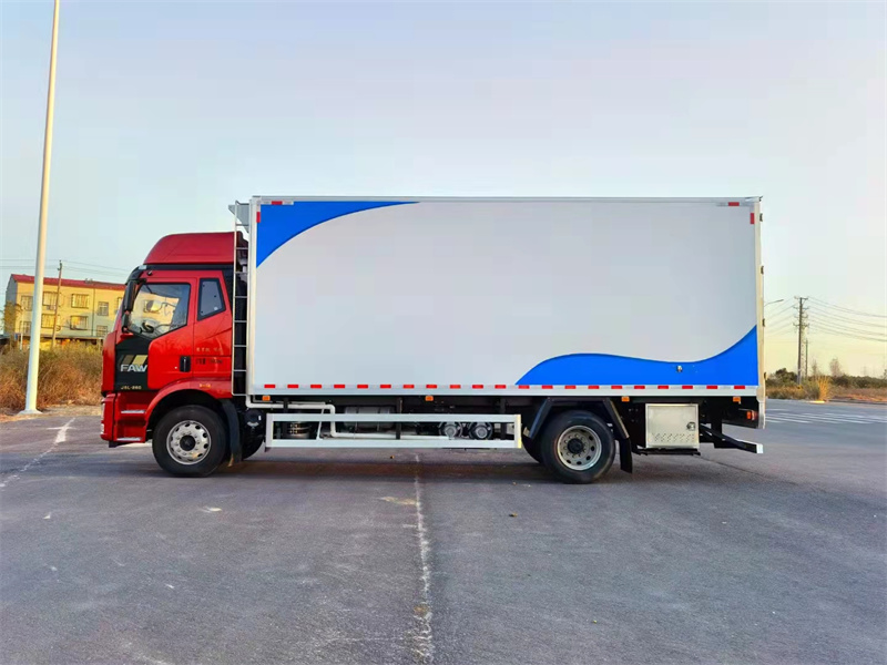 解放J6L國六6米8鮮活魚水產品冷鏈運輸車上裝配置:冷藏箱體配置:《斷橋隔溫工藝、整體結構框架》;內外面料為3mm耐海水腐蝕玻璃鋼;側板+頂板:龍骨斷橋為鐵質框架加松木復合板;木質隔溫結構;夾心為聚苯乙烯保溫材料;全密封雙組合聚氨酯膠粘連;廂體厚度為8cm;鍍鋅包角;最新款鋁合金包邊型材;型材局部厚度為4mm(采用玻璃膠粘結減少打孔增加箱體耐腐蝕性);廂體內部采用2個LED照明燈及廂體示寬燈;后門框為2mm厚304不銹鋼材質;門框密封條為三元乙丙橡膠材質;加厚型304不銹鋼合頁及鎖件;副梁為Q700車用大梁鋼(副梁采用噴粉工藝,金屬表面物理化拋丸處理;結晶體皮處理;靜電粉體涂裝;熱固化200-220℃高溫烘烤;常溫冷卻。耐酸耐堿耐腐蝕);15mm厚大梁墊皮;加裝防撞膠塊;不銹鋼門鎖件,配后雙開門。安裝國產非獨立制冷機組,最低溫度可達-15度,可根據運輸需求進行調節。